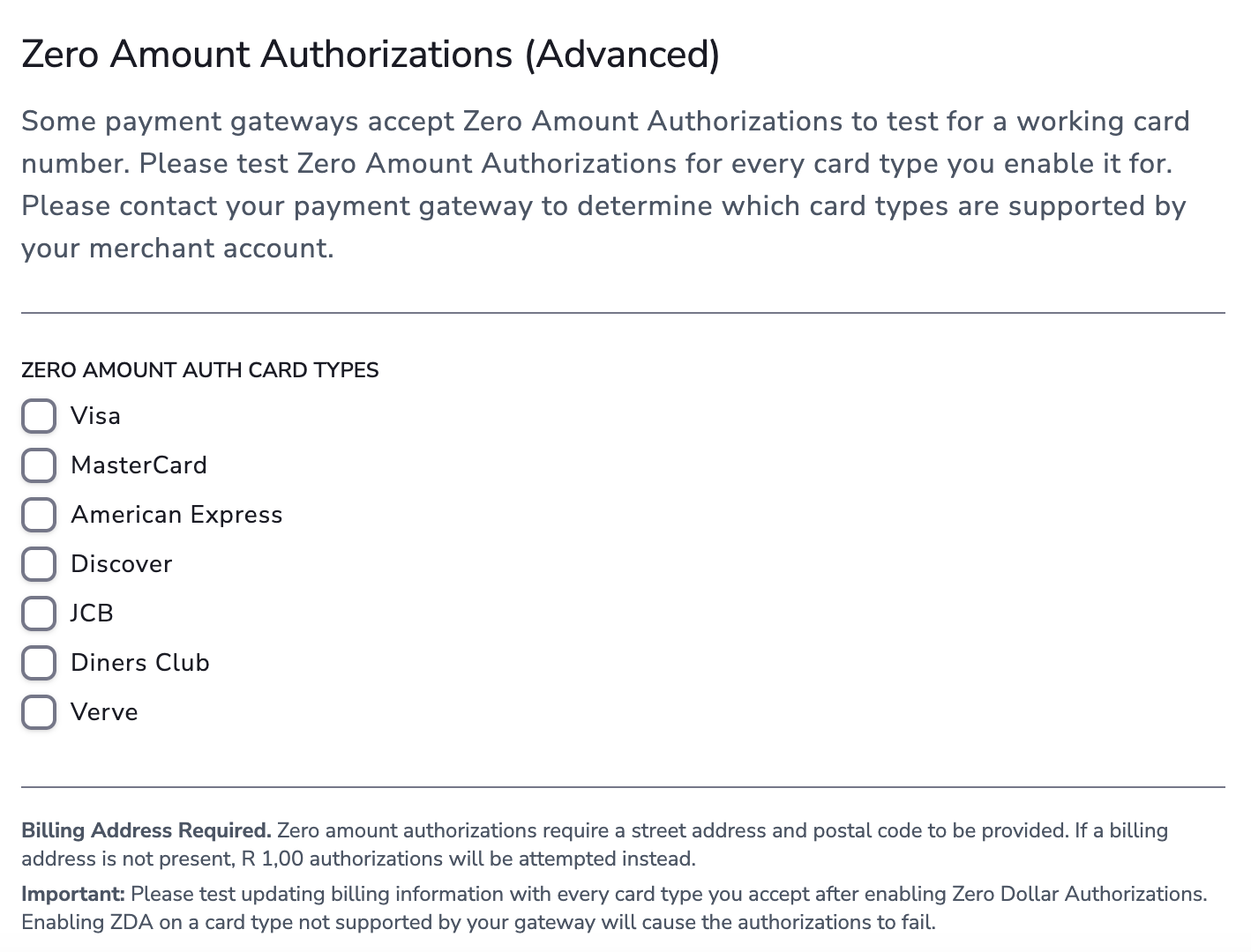 ZDA lets you verify a customer's payment method without placing a temporary hold on their card. This must be enabled on your payment gateway account first — contact your gateway provider to confirm support.