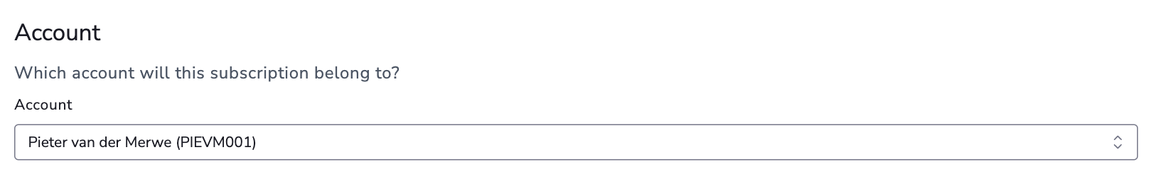Select the customer account this subscription will belong to. You can search by name or account code.