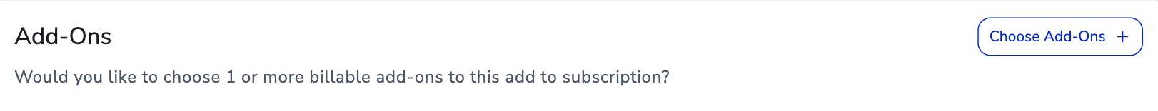 Additional services or features that sit on top of the core plan. Click Choose Add-Ons to open a dialog listing all add-ons available for the selected plan. Select one or more, then configure the pricing and quantity for each.
