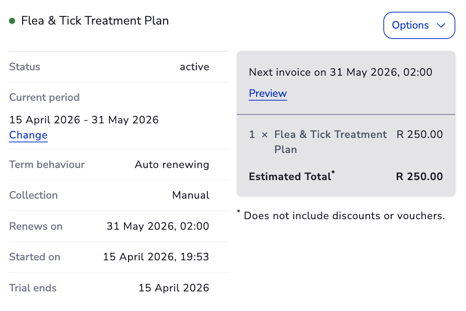 - The subscription remains in its current state (Active).